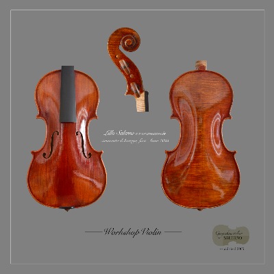 Diese Instrumente nennt das Atelier die " Werkstattlinie " handgefertigte Instrumente die für den Amateur und fortgeschrittenen Schüler im Geigenbauatelier Salerno hergestellt werden. All diese Instrumente basieren auf ein Stradivari und Guarneri del Gesú Modell, welches personalisiert wurde.Gefertigt aus gelagertem Tonholz und lackiert mit einem Öllack.
